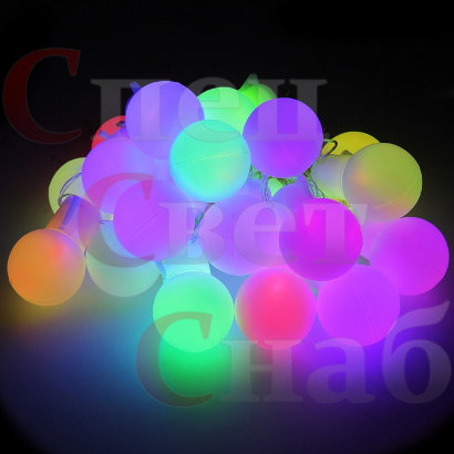 светятся расцветкой Мульти, а длина кабеля позволяет разместить гирлянду по